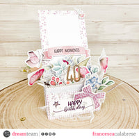 Ho poi tagliato due striscioline che ho incollato internamente che sarebbero servite per sostenere i miei die cut della collezione “let your soul bloom” e “spring flower” e il numero 40.