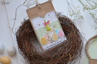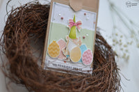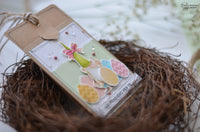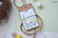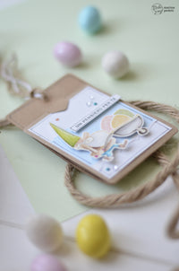 Come sempre più spesso sta accadendo, i soggetti dei miei lavori sono i fantastici gnomi del set *Chariot of Joy*, che per queste tag si sono vestiti con colori più primaverili e sono andati a caccia di uova di Pasqua, ricavate semplicemente capovolgendo i palloncini del set *Buon Compleanno*!