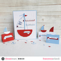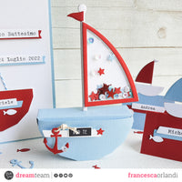 Per realizzare l’invito e la bomboniera ho usato il set di fustelle “Cute Boat”, mentre per il segnaposto ho usato la barchetta del set “Sea Charms”. Vi consiglio di usare le carte Double Face nei colori “Pastel Frost” e “Pastel Strawberry”, a me piace molto il senso di freschezza e allegria che da, ma ovviamente siete liberi di usare qualsiasi altro colore, non vedo l’ora di vedere i vostri abbinamenti!