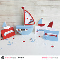 Oggi voglio farvi vedere questo set a tema barchetta composto dalla bomboniera in versione shaker, l’invito e i segnaposto. Li ho realizzati per un Battesimo, ma in realtà possono essere usati benissimo anche per un compleanno o una comunione.