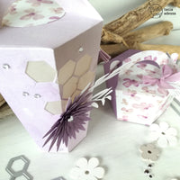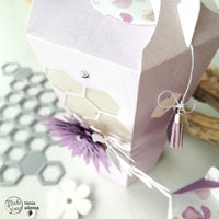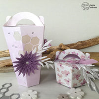 Per questo progetto ho utilizzato la collezione “Spring Flowers”, utilizzando due patterned diverse, e la fustella “Hexagon box” dove ho modificato le misure della scatolina per ottenerla più alta (qui trovate il video di spiegazione: https://www.youtube.com/watch?v=1eDu_WM4WUI).