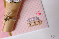 Ho rinunciato ad inserire il numero, infondo per una donna è sempre meglio ometterlo e sono d'accordo! Ma comunque una tappa così importante meritava un sentiment speciale e così ho timbrato sulla busta "L'avventura inizia da qui"!