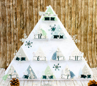Per prima cosa ho creato 24 Triangle Box e le ho rivestite con la collezione Icy Winter, poi ho realizzato la base su cui ho incollato le scatoline: