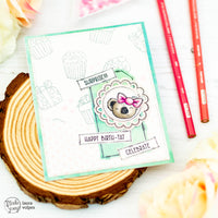 Ho timbrato il koala dal set Postage Hugs con il tampone Memento Tuxedo Black e l'ho colorato con le matite Prismacolor. Ho anche utilizzato uno dei timbri nel set Postage New Baby per creare un fiocchetto rosa per il mio tenero animaletto! :)