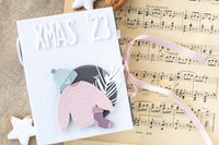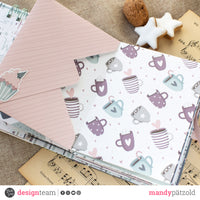 Ho piegato alcune buste con l'Envelope Punch Board, le ho incollate tra loro e poi ho inserito il tutto in una copertina a libro di cartone, che ho ricoperto con la meravigliosa covering paper Cuddle Time.