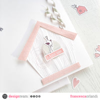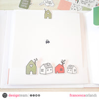 Per le decorazioni ho usato i Die Cut “Love is in the air”, i Sentiment Strips “Love”, “Comunione” e “Cresima”. Su una pagina ho usato la fustella “My home bird house Add-On” per il fumo che esce dal comignolo ho semplicemente arrotolato una sottile striscia di carta.