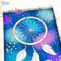 Sono poi passata alla creazione dell'acchiappasogni. Per il cerchio esterno ho utilizzato le Dashing Circles, con le quali ho fustellato una delle carte nel pad Wood Effect. Ho anche fustellato del cartoncino kraft, in modo da poter sovrapporre i vari cerchi e creare spessore.