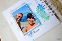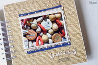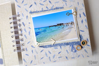 Ho giocato con dei pezzettini di stoffa tagliati e sovrapposti sotto alle fotografie per dare un tocco rustico ma anche "marino".