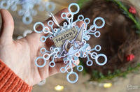 Per questo progetto ho pensato di utilizzare le fustelle dei bellissimi fiocchi di neve dei set *Big Snowflake* e *Snowflakes Set*, cosi da costruire un fiocco bello pieno e compatto sul quale far riposare un simpatico gnometto del set *Time to Celebrate*, che ho colorato con i Copic Marker.
