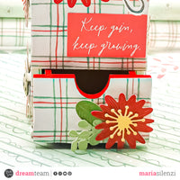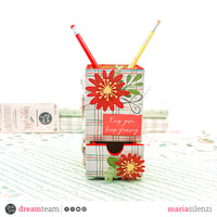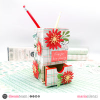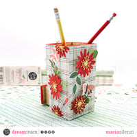 Rivestito il portapenne mi sono dedicata alla decorazione utilizzando le fustelle “Happy flowers” e i die cut della collezione. L’effetto finale mi è piaciuto davvero tanto e penso che sarà un oggetto che rallegrerà la mia scrivania.