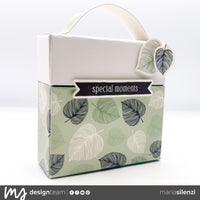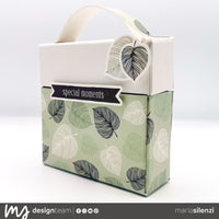 Sul coperchio ho aggiunto un manico che richiama la carta della scatola. Per decorare il portafoto ho utilizzato semplicemente alcuni DIE CUT della collezione Spring Poppies, perché volevo che risaltasse da sé la bellissima carta pattern.