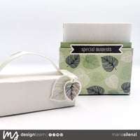 Ho innanzitutto tagliato dal CARTONE VEGETALE da 1,5 mm i pezzi necessari per la scatola e il coperchio. Ho poi rivestito, e così unito, i vari rettangoli di cartone con una carta della collezione e con una woodstock bianca.