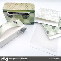 All’interno della scatola ho creato e inserito tre paginette, di cui una con il VELLUM SPRING POPPIES e un RUB ON, che potranno racchiudere foto o ricordi scritti a penna.