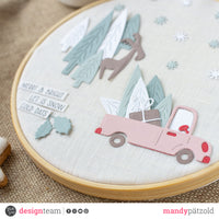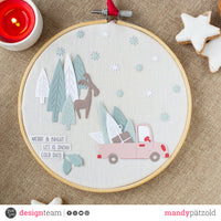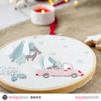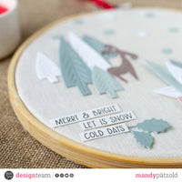 Prendete il blocco 6x12 "Color Pallette Cuddle Time" e il "Fluffy Christmas" e posizionate una piccola immagine invernale sul tessuto. Quindi incollate il tutto e decorate con le scritte della collezione "Fluffy Christmas".
