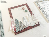 Per decorare la pagina ho creato 4 cornici usando i timbri del set Good Cheer. Ho decorato ogni cornice in modo molto clean & simple. Per il titolo della pagina ho usato il *Funny Alphabet*, il mio preferito in assoluto, anche per la scritta ho scelto ancora una volta il tono su tono.