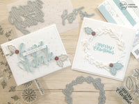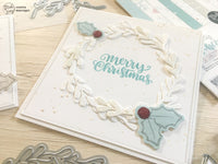 Per la seconda card invece ho fustellato due giri di foglie *Mistletoe Wreath*, timbrato la scritta Merry Christmas con il timbro Tommy Merry X-Mas e aggiunto l’agrifoglio.