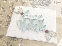 Per la prima card ho usato la fustella *Buon Natale*, ho decorato la scritta con delle foglioline di agrifoglio del set *Tommy Merry X-Mas* e un sentiment del set *Per Te*.