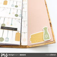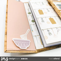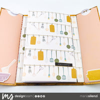 Nella parte centrale interna ho invece creato delle pagine a fisarmonica bianca, con qualche tasca, in cui poter annotare le ricette. Ho decorato il tutto con i DIE CUT della collezione “Herbs and flowers”.
