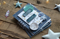 Per realizzare questo piccolo mini album mi sono servita quasi unicamente delle carte, dalle quali ho ritagliato gli elementi decorativi di cui avevo bisogno, compreso il piccolo astronauta, preso dal foglio iniziale del set, ed utilizzato per decorare la copertina.