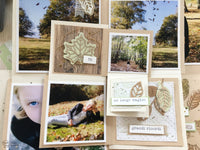 Per la struttura ho scelto i toni del craft e betulla che ben si adattano ai colori autunnali, per decorare la copertina mi sembrava perfetta la carta effetto legno del paper pack *Forever Green*, ho timbrato con Versafine ed embossato a caldo, mi piace molto come risaltano le foglie in trasparenza.