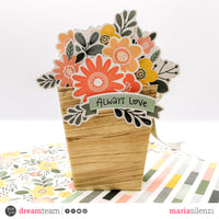 Allora in questi giorni appena ho avuto un momento libero mi sono immersa tra le carte e i die cut di “Happy flower” e ho realizzato questo mini album a forma di vaso fiorito.