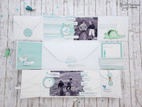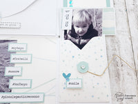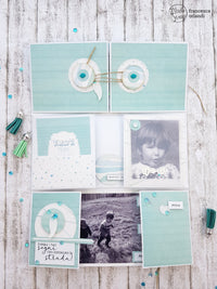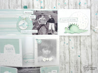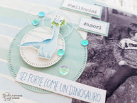 Per realizzare gli abbellimenti ho utilizzato le fustelle del set Dashing Circles, i cuori del set True Love, poi ho ritagliato il dinosauro azzurro dalla carta patterned, (non è un amore con le foglioline in bocca?!) e non contenta ho aggiunto anche lo sticker del dinosauro verde.