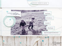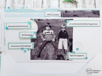 Per i sentiments ho scelto di usare due frasi prese dagli Stickers Dino Land “Sei forte come un dinosauro” e “Migliori amici per sempre”, in più ho timbrato le frasi del set clear stamps sentiments Papaveri. Infine ho aggiunto gli hashtag scritti a macchina.