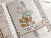 Protagonisti di questo lavoro i Papaveri, ovunque, in ogni pagina! Li ho timbrati su vellum in bianco ed embossati a caldo, colorandoli poi sul retro con i alcool marker.