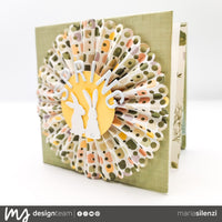 Per questo mini album ho scelto la nuova collezione HERBS AND FLOWERS fruttando le carte più aderenti all’idea di primavera. Ho quindi rivestito la copertina con la covering paper verde HERBS AND FLOWERS, decorandola con la coccarda della fustella CONGRATULAZIONI, i dolcissimi coniglietti della fustella BUONA PASQUA e l’alfabeto adesivo bianco PUFFY ALPHABET STICKERS WHITE.