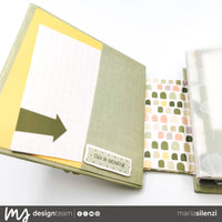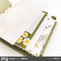 All’interno della copertina ho creato una tasca con la covering paper verde e una monocromatica gialla del pad 6x12 COLOR PALETTE HERBS AND FLOWERS.