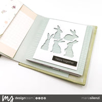Per un tocco di eleganza, in un albumino così colorato, ho aggiunto la carta vellum SPRING POPPIES 02 come prima pagina. Nelle pagine pop up ho ripreso sempre il tema della primavera con i coniglietti, sfruttando anche il negativo della carta fustellata.