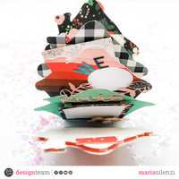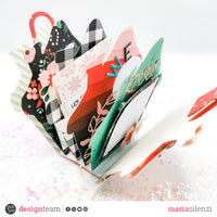 Per realizzarla ho scelto la coloratissima collezione “The magic of Christmas” e ho utilizzato la add on per tagliare la copertina e le pagine interne, rilegandole alla base.