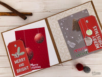 Per la struttura ho utilizzato un supporto in cartone di ModaScrap e l’ho rivestito con le bellissime carte della linea Merry and Bright.