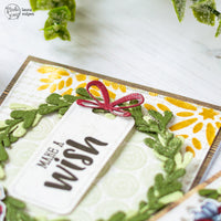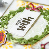 Per i sentiment ho utilizzato la fustella più piccola nel set *Hanging Tag*, carte dal pad Forever Green e due diversi timbri dal set Forever Green.