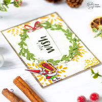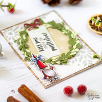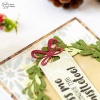 I fiocchetti sono stati realizzati con un'altra fustella nel set Mistletoe Wreath. Li ho spennellati con il Fluffy nel colore Red Berry per aggiungere colore e glitter.