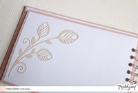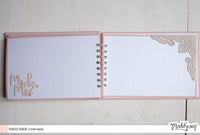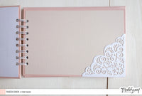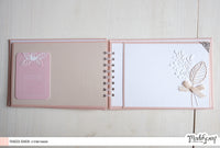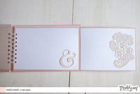 Ho usato bazzil in tinta unita sui colori neutri del bianco, rosa e tortora e ho arricchito ogni pagina con le fustelle ModaScrap e alcuni elementi in legno.