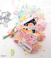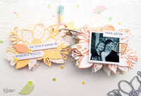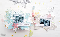 Già solo abbinare la base “piena” della primula con la sagoma stilizzata del fiore, potrebbe essere sufficiente per arricchire e abbellire la pagina, ma ho comunque deciso di aggiungere qualche fogliolina e fiorellino del set *Tommy Bouquet di Primavera* per far risaltare il journaling fatto con gli stickers *Sentiments Typewriter*.