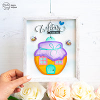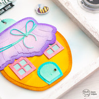 La star dello show è la fustella Honey Jar, che ho trasformato in una casetta con le fustelle del set Candy Box House Add On. Adorabile! Ho aggiunto colore alle fustellate con i Distress ink nei toni del lilla, rosa, giallo e verde acqua - se volete sapere esattamente quali sono non dimenticate di guardare il video tutorial che ho condiviso sul canale YouTube di ModaScrap!