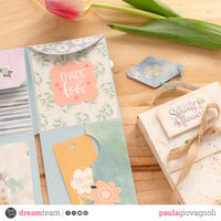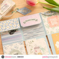 Per realizzarla ho utilizzato le carte e le covering paper della linea *spring flowers* i die cut della collezione *happy flowers*.