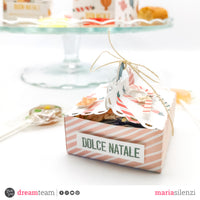 Per decorare l’esterno ho invece utilizzato i timbri Dolce Natale e ho ritagliato dalle carte alcune immagini che ho spessorato per dargli risalto.