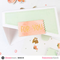 Infine sulla scatolina ho applicato il fiocchetto “Creative Bows” e la scritta “FOR YOU” presa dai nuovissimi e geniali “Glue Rub-On Make a Wish”. Per questi Rub-On ho usato i Gilding Flakes Oro della Nuvo, ma si possono usare sia i glitter che il foil.