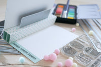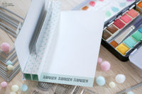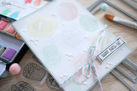 Ho creato uno sfondo con gli acquarelli, ho timbrato con inchiostro “no line” tanti cupcake dal set timbri *Postage Celebrate*. Adoro questo set, è diventato subito uno dei miei preferiti.