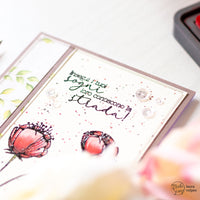 Per il progetto di oggi ho deciso di creare una card che combinasse carte dall'ultima release ModaScrap con un set di timbri uscito in precedenza. Mi piace molto utilizzare prodotti diversi sulle mie creazioni, e le carte *Let Your Soul Bloom* e il set di timbri *Papaveri* si sposano alla perfezione!