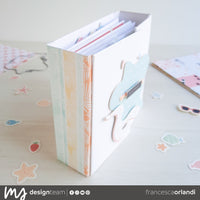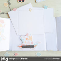 Per realizzarlo non potevo che usare le bellissime carte della collezione “Tropical Dream” 6x12 e 12x12 abbinate alla fustella “Waving Elements” che caratterizza ogni pagina e anche la copertina! Il tema di questa collezione è fatta apposta per le nostre vacanze al mare!