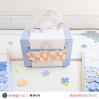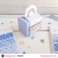 Come dicevo ho fatto la bomboniera con la fustella “Weave Basket” e la carta della collezione 12x12 “Hello Sweet Boy” poi l’ho decorata con i fiorellini della fustella “Millefiori”, ho scelto il giallo della Color Palette “Hello Sweet Boy”.