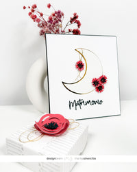 Per la partecipazione ho usato la nuova fustella «moon card», la «flower mix» per realizzare i piccoli papaveri e la fustella «matrimonio». Per la scatolina porta confetti ho utilizzato la «cookie box», pratica e veloce da fare perché necessita di una sola fustellata.