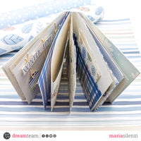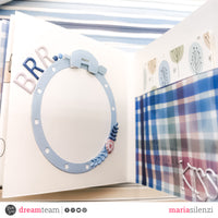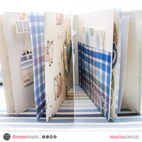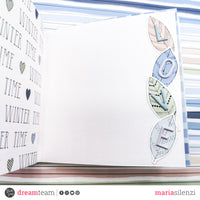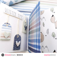 Ho però inserito tra le pagine anche il vellum a scacchi “Winter Time 02”, che ho utilizzato anche come tasca. Per decorare le facciate, mi sono sbizzarrita ad utilizzare le varie fustelle presenti nel set “winter friends” I cuori della fustella “my home” E alcuni die cut della collezione.