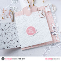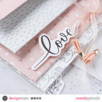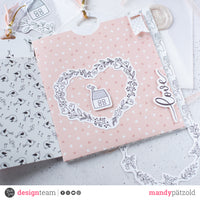 To celebrate the month of love, I created a sweet album with the wonderful collection "Love is in the air"? It consists of four open envelopes and a smooth page to finish it off. The envelopes are each made with 3, 4, 5, and 6 inch paper, which is great for finally making use of all the beautiful 6x6 inch papers we have at home.