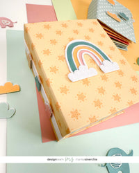 For the clouds and the rainbow I used glitter crepe rubber to thicken them and give brightness to the decorations. I applied the glossy accents and let them dry.