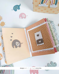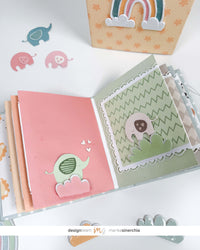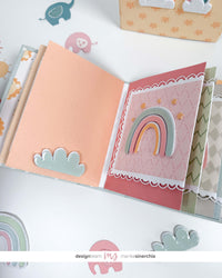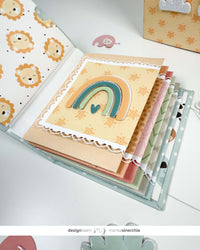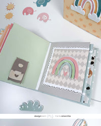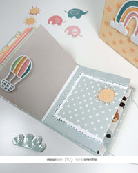 The album was to contain the most significant photos from primary school and the collection ‘A new star is born’ seemed perfect for this occasion. First, I created all the decorations with the dies set ‘Boy & girl’, “Koala”, “Little hearts”, “Moon card” by Modascrap and the colour palette ‘A new star is born’.